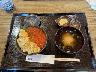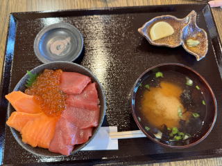 昼に、”ひなたかなた”と言う店で鉄鍋海鮮丼を食べました。