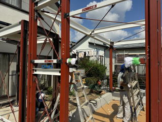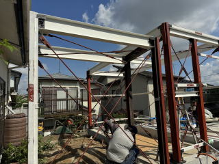 現在、棟屋を作ってます。鉄骨です!